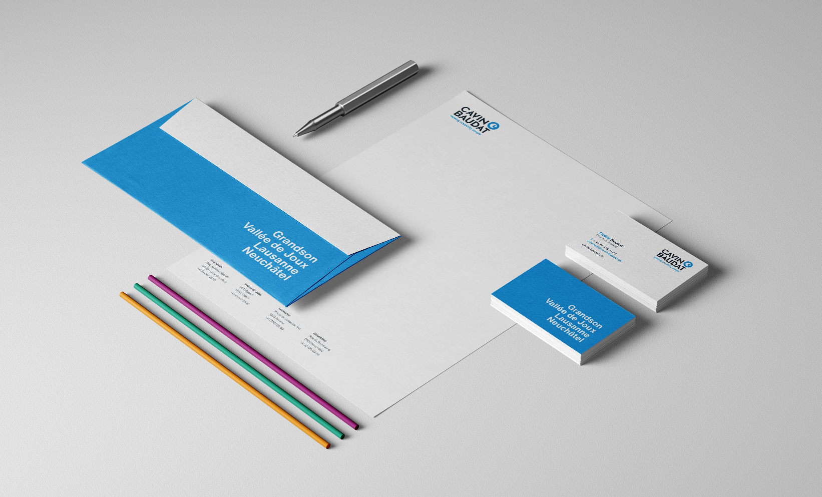 Cavin-Baudat est née de l’union des imprimeries Cavin et Baudat, deux acteurs reconnus du secteur de l’impression en Suisse. Cette fusion représentait une étape stratégique majeure, nécessitant une harmonisation claire et cohérente de l’image de marque.